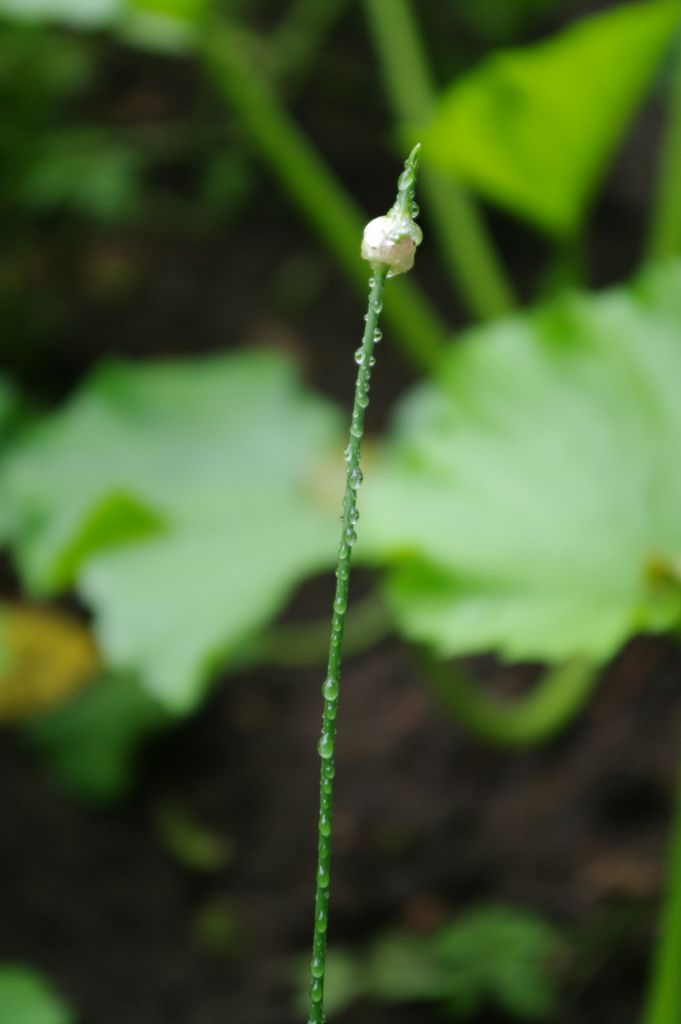 Water droplets on onion shoot