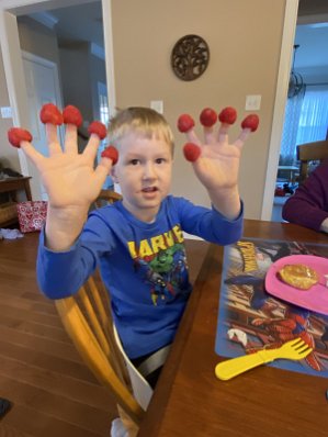 Showing off his 10 raspberries