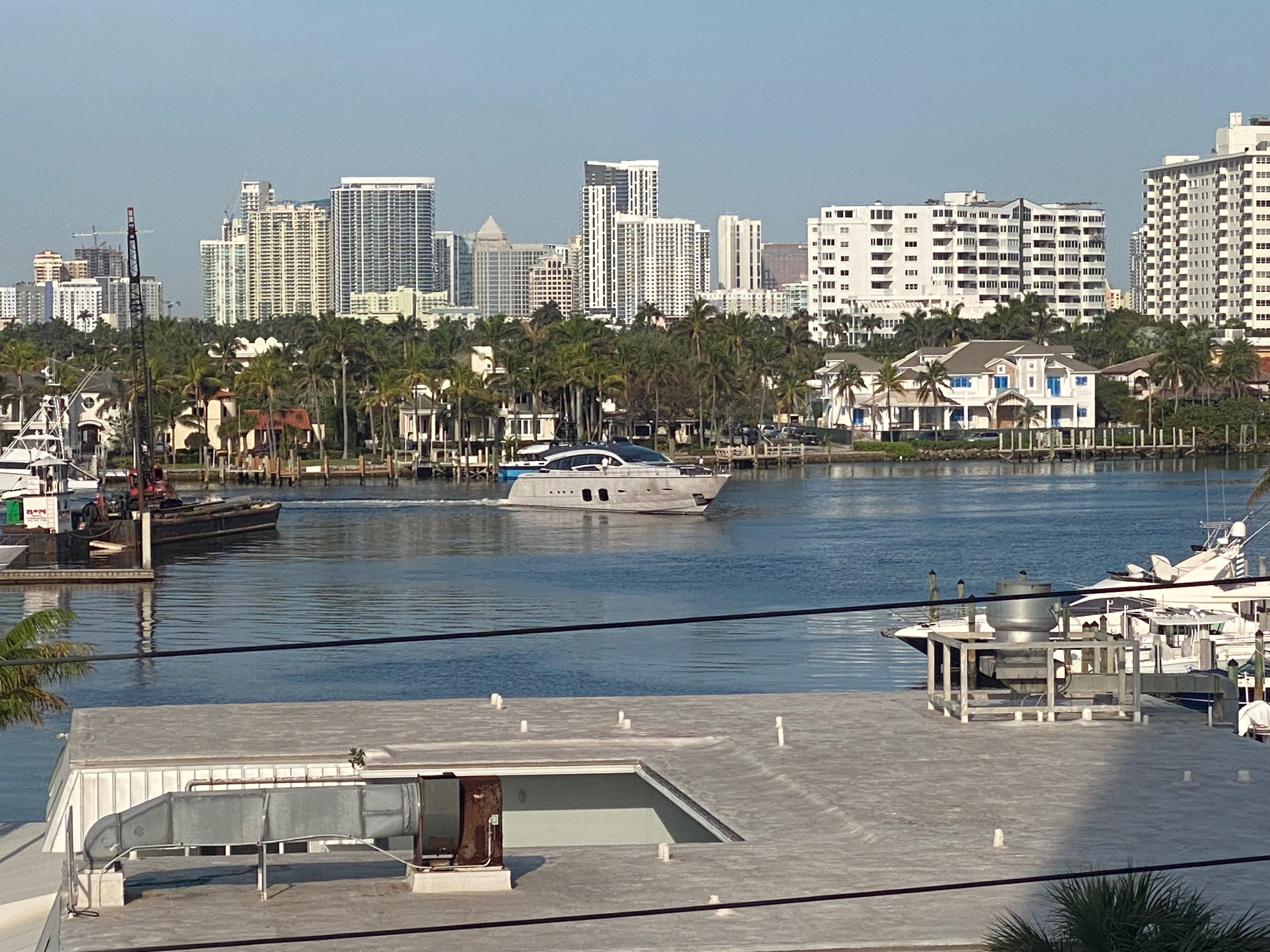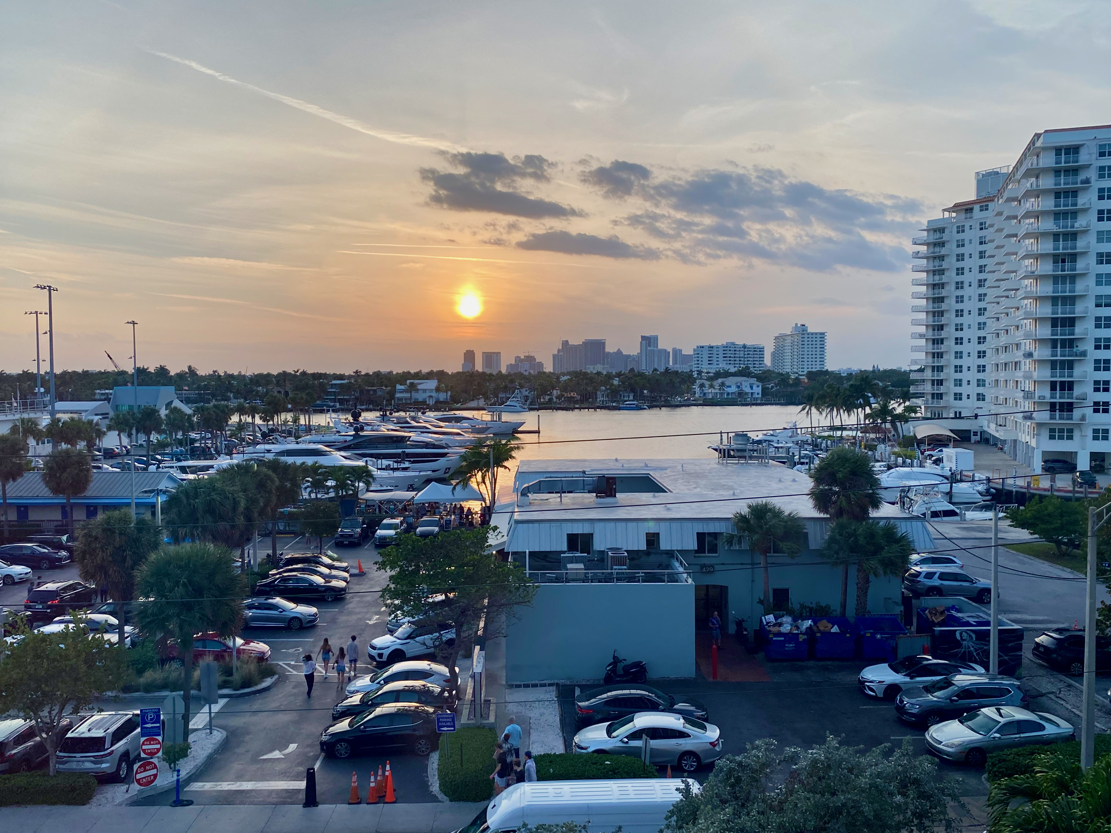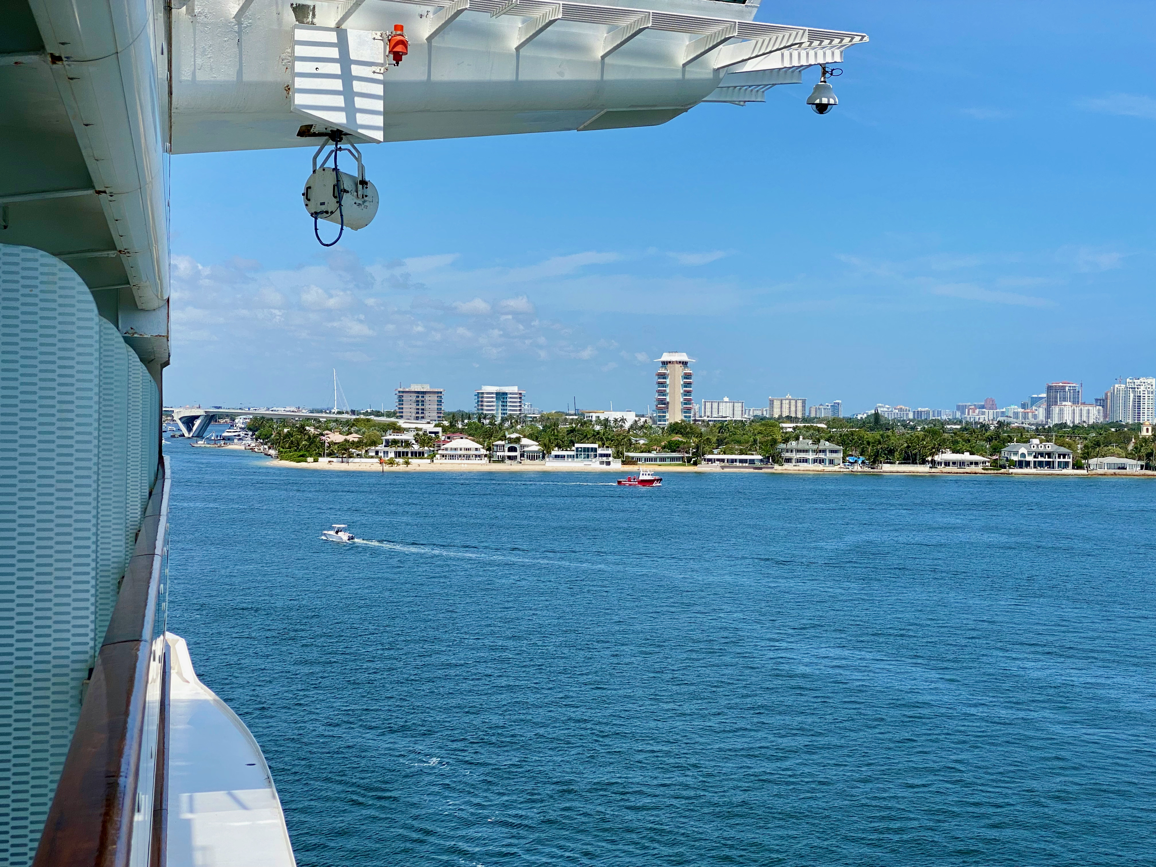 Over the coastline, just north of Fort Lauderdale Bubba Gump: Classic burger w/avocado + fries Lots of fancy cars on the street Diver at International Swimming Hall of Fame tower International Swimming Hall of Fame diver - video Beach scene - Las Olas Beach scene - Las Olas - view looking north Another beach scene Watching the Disney Dream leaving Fort Lauderdale [we were on this ship a month later] Sunset over Fort Lauderdale Beach at dusk Yacht in Intercoastal Waterway View of Marriott Courtyard Beach from the beach Michael ready to board the Equinox at Port Everglades - pier #25 Sonia walking up the gangway Michael stepping off the gangway onto the Equinox @ 12:42 PM Our cabin - looking from balcony to closet, bathroom, and cabin door Reverse view: across bed, dresser, couch, balcony sliding door, and balcony Looking from our balcony toward our hotel [far right of center]. Bottom of navigation bridge visible at top of picture. View of the Equinox main outdoor pools