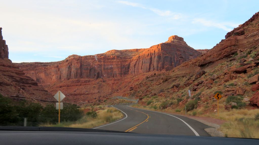 Setting sun along very scenic Utah highway 128.