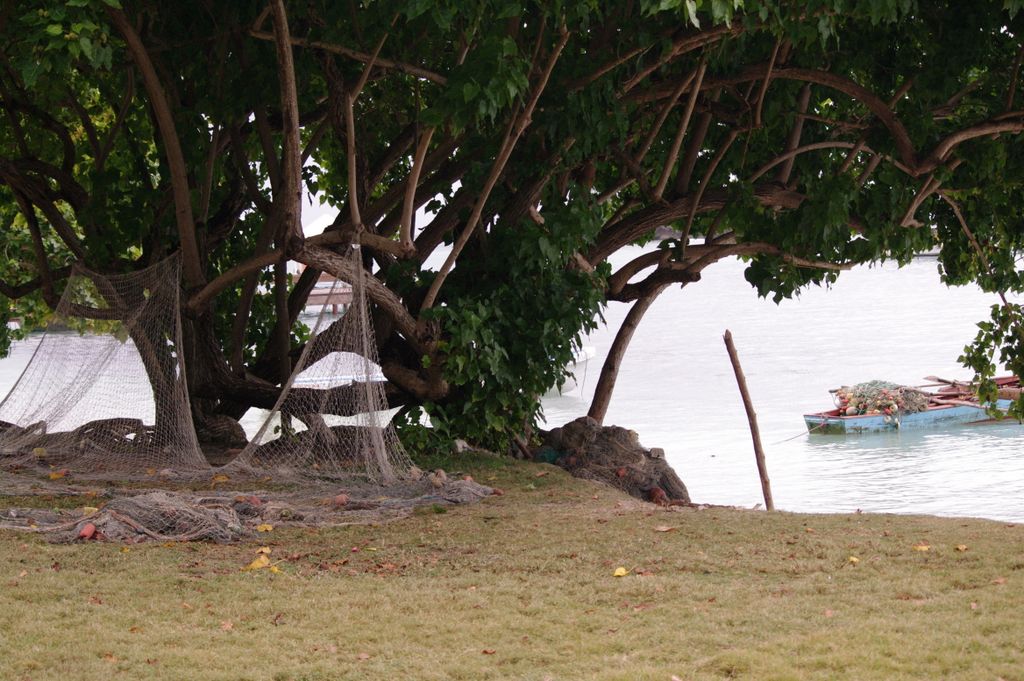 Fisherman nets drying and in boat