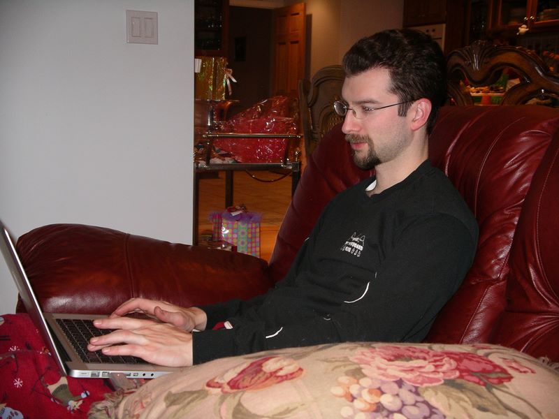 christmas_2008 -- Matthew reviewing the evenings pictures.