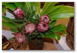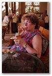With watching three full length movies 'on the seatback in front of us' and eating two meals, the time just flew[ouch!] by. After a short layover and change of planes in Honolulu it was on to Kauai. We had already made our dinner reservations, so once we got our luggage up to the room, we drove to Keoki's Paradise for the first 'fruity' drinks. By the time we finished dinner and dessert, it had been a long, long day, having added 6 hours to it by flying west.