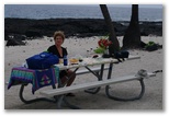 The three hour trip was very pleasant. We stopped at a black sand beach for a picnic lunch and got to see three green sea turtles coming out of the water to rest. That was definitely the highlight of the day [except for the cold beer in Kona -- but I'm getting ahead of myself].
