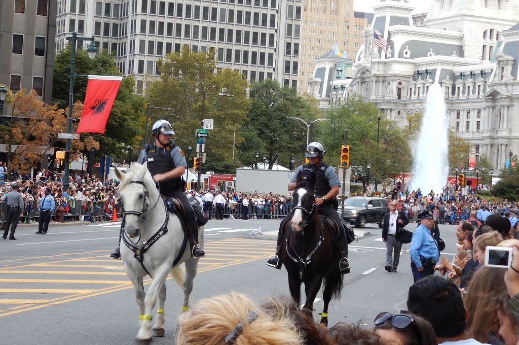 Mounted police coming up from City Hall