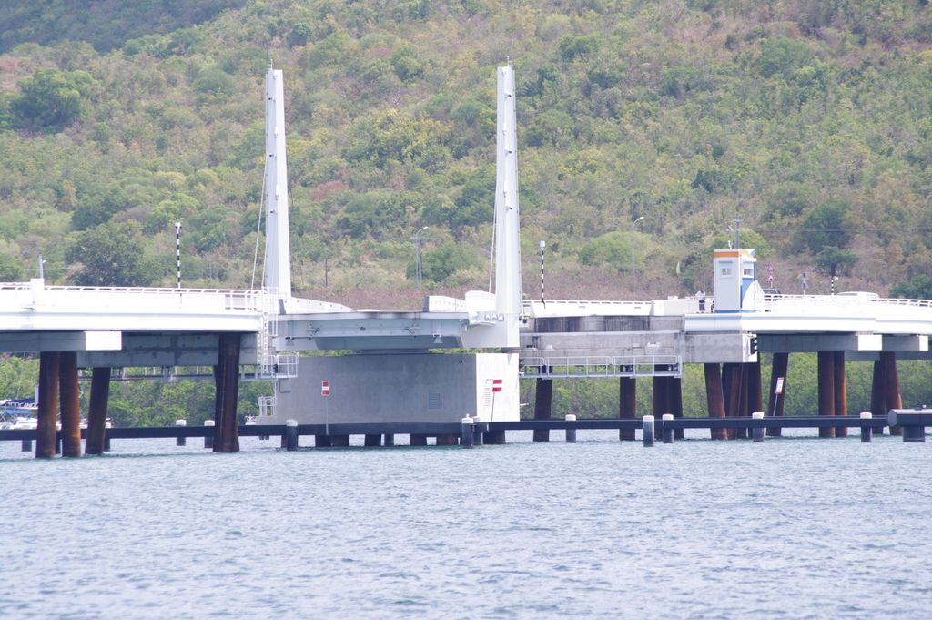 Bridge starting to swing open - view from airport road