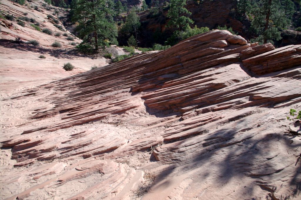 These rock layers reveal their formation from shifting sands