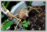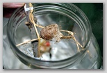 I had stored the egg case in a large jar over the winter to provide added protection against the elements. Once the weather warmed up, I noticed one evening after work that I was the 'father' of over 200 little baby praying mantes!